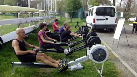 Les rameurs du club, et notamment les compétiteurs, ont à leur disposition un ensemble d'appareils de musculation (cage à squats, presse oblique, bancs à tirade...), ainsi que 6 ergomètres, que l'on peut même installer dans l'herbe devant le club, pour joindre l'utile à l'agréable par beau temps...